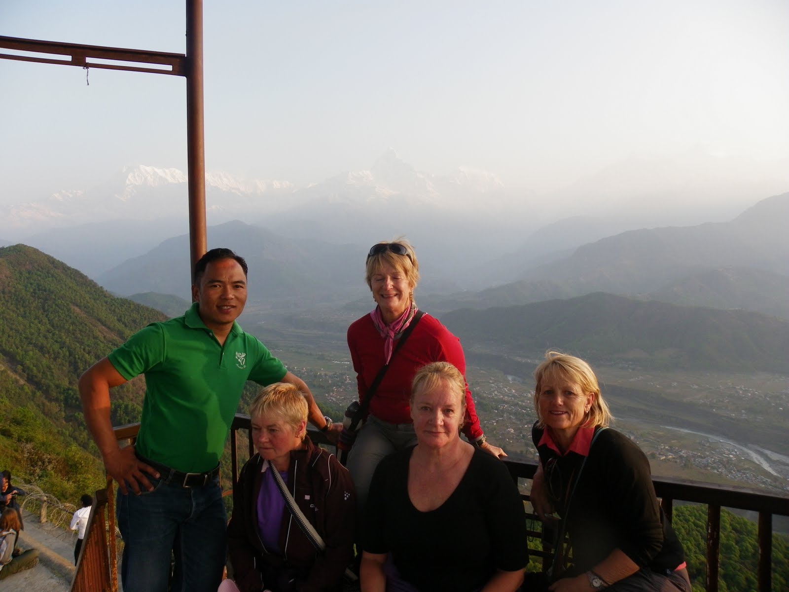 Yesterday sadly we said goodbye to our new found friends in Chitwan and continued on our journey to Pokhara a vibrant town situated at the base of the massive Annapurna mountains. This morning we were up at 5am to hike to Sarangkot a hill station situated high above Phewa Lake. It was a stunning sunrise and the mountains put on their magnificent display. We returned to the hotel for a much earned breakfast then it was off to the Tibetan Refugee Camp where the girls purchased carpets which have been made at the Tibetan Factory situated inside the camp. There bags are beginning to buldge, and they are excited about supporting the economy of Nepal. Next was a relaxing boat ride on Phewa Lake with the amazing Machapucchre mountain as our backdrop. We then managed to fit in a visit to the Namaste Orphanage which is supported by Joanna Lumley there are 65 children at the orphanage between the ages of 6 and 15. One of my ladies who will be joining me on the next tour beginning on the 9th April has kindly offered to do 5 days of teaching whilst the group are trekking to Ghorepani and Poon Hill. Tomorrow morning we will take an early flight to Kathmandu this will be the girls first experience of this manic exciting city before departing the following day to Bhutan.