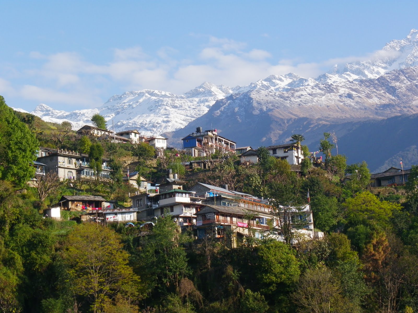 It has been a few days since my last post – the reason – away trekking in those wonderful Annapurna mountain trails. The trip has been amazing we have experienced all types of weather afternoon storms that last for 30 minutes then glorious sunshine. Yesterday we arrived in Chitwan and it is HOT! We woke at 530 am breakfast at 6am and departed for our canoe ride down the Rapti river at 630. On the 1 hour paddle we were very excited to come across a rhino in the water we were so close that we could nearly reach out and touch him he knew we were there the ears were up and the nose twitching then he decided to stand up in about 1 foot of water and come towards us, we were saved by out guide and driver beating sticks to scare him away phew what a releive we all survived one very nervous experience. We also took part in the elephant washing and now the girls are out on elephant safari hopefully they will spot a tiger!! Tomorrow we fly to Kathmandu and stay overnight in Bhaktapur a UNESCO city and then 2 nights in Kathmandu before the trip ends. Here are some great photos Namaste for now.