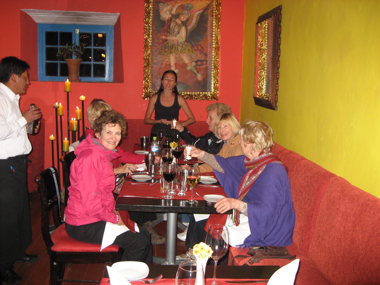 On arrival at Ollyantambo our driver David was their to meet us and we then drove to our hotel in the Sacred Valley to collect our main luggage. A quick stop at the Pisac markets to enjoy an empanada and buy a few things that the ladies had their eye on during our vist to Pisac 3 days before. We arrived into Cuzco around 3.30pm and our hotel. A few of us ventured out again to the main square where there was a hive of activity. Locals were celebrating Corpus Christi enjoying time with family and friends. There were food stalls everywhere ladden with kababs of corn, chicken potato and of couse the local drink chicha. In the evening we went to a stage performance of Andean dancers and singers – a very colourful performance. Dinner was at a fabulous restaurant where we were given a demonstation on how to make Pisco Sour a drink made of alcohol (pisco) syrup, lime and eggwhite, we all had a turn at making our own drink which was a fun experience. Tomorrow we will celebrate the most important festival of the Andean culture – Inti Rami Festival. Keep checking the blog!!