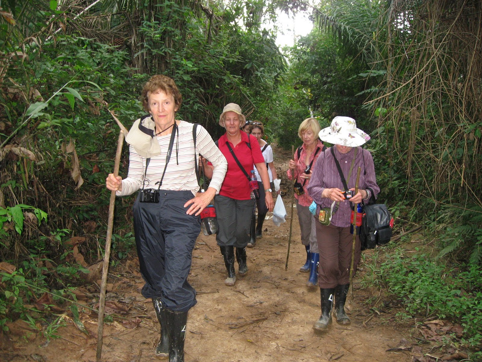 Today we sadly departed Cuzco on another adventure to Puerto Maldanado and the Amazon Jungle. On our arrival at the airport in Puerto Maldanado we were surprised to find the weather quite cool and raining, it was a huge contrast from my 2010 visit when the temperature reached a boiling 42 deg.From the airport we were transferred to the office headquarters of our tour company where we were to leave our main luggage in storage. Our guide Gabrielle advised us to only take the necessities for the next 3 days. We were given a briefing before taking a 25 minute journey down the Madre de Dios River by motor canoe and the riverside trail head to Sondoval Lake Lodge. On board we were given a delicious lunch of rice, chicken and vegetable wrapped in a palm leaves. On arrival at the jetty we were presented with gum boots to help us walk the next 3.5 klms (by this time the rain had stopped although it was very muddy under foot) through secondary forest, after 5 minutes we arrived at a ranger station and check point where we had our passports stamped. Another 40 minutes hiking took us to a small canal where we boarded our canoes and paddled 200 meters through flooded forest of 30 meter tall Mauritia palms to our lodge on the lake.