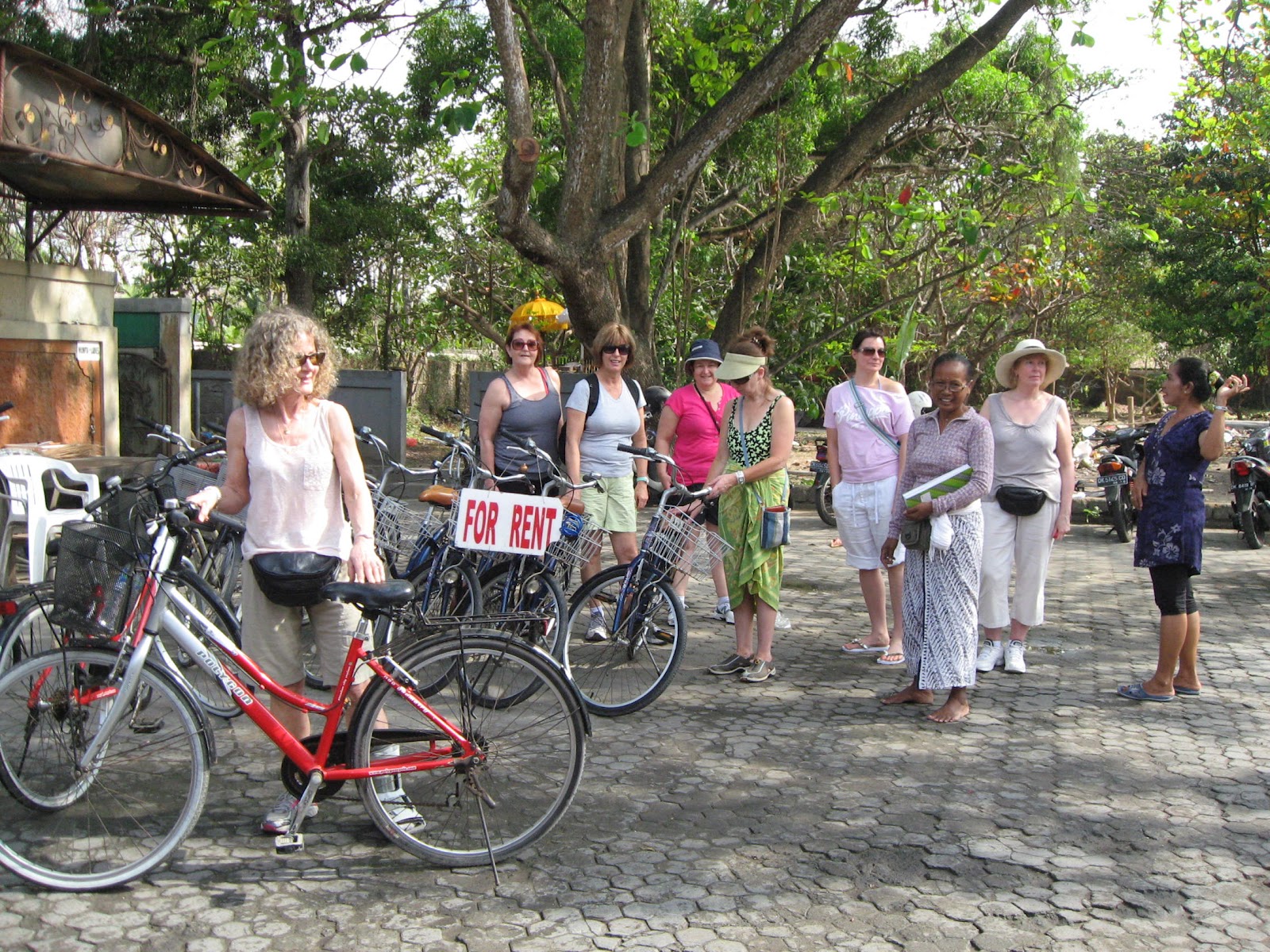 Our first morning the ladies were very eager to try their bike skills so we set off on a flat 10klm ride on a cycle path that followed the shores of /Sanur Beach. We were so fortunate to come upon a celebration and kite competiton, and beautiful Balinese dancers.