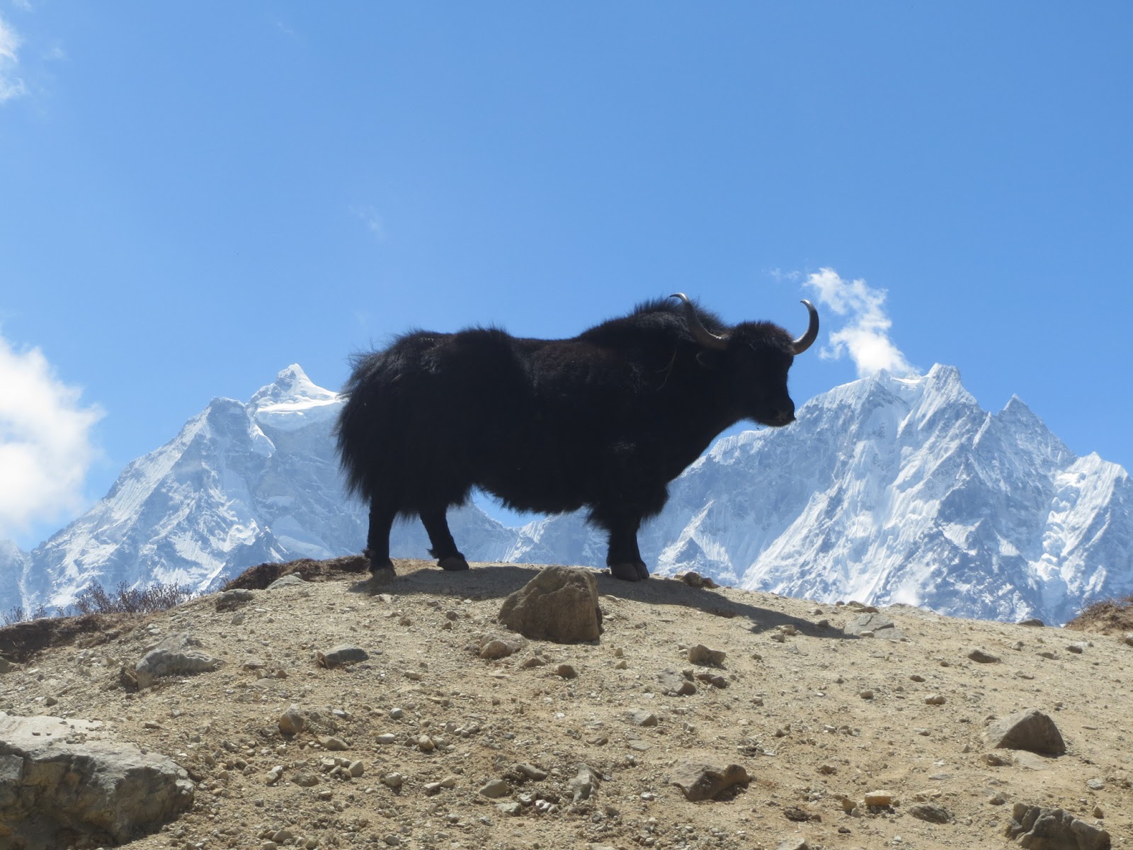A group of 7 trekkers and myself departed Kathmandu on the 9th April bound for the Solu Khumbu are of Nepal. our final destination Gokyo Ri at 5563 mtrs. Our first awe inspiring experience was the flight to Lukla which is classed as the most dangerous airport in the world. The check in at Kathmandu’s domestic airport went without any delays, this is my 10th trip to the Everest area,and I can honestly say the fastest departure I have ever experienced, we did not even have enough time to finish our coffee before the flight was called. Obviously our prays were answered for fine weather and a safe flight. The scenery was spectacular, waterfalls bursting out of the forest canopies, and above we caught our first glimpse of the snow capped mountains, rice paddy villages stepped below us as if there were about to fall away into the valleys. Our group were by no means hard core trekkers, and at times found the trek quite challenging, especially when you are hiking above helicopters and air crafts cruising altitude. It takes a while to get yourself accustomed to carrying a light backpack, and manouvering through donkey and yak trains carrying loads of supplies to lodges.Our first day was relatively easy enabling us to acclimitise,